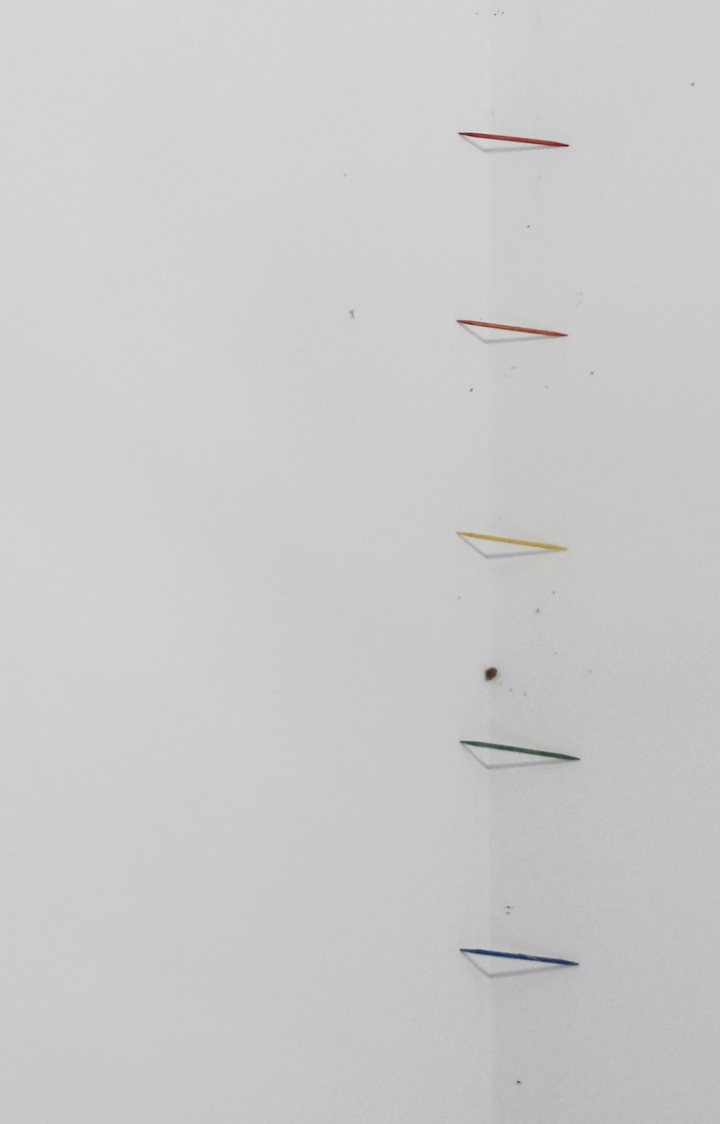 rainbow color dyed birch wood (toothpicks), spider webs, laser print